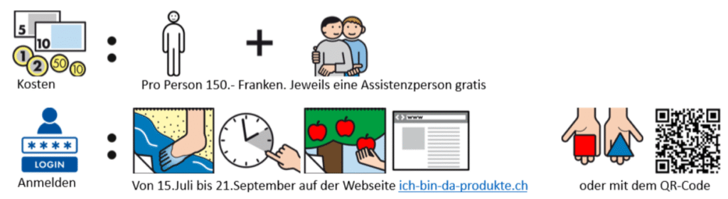 Teilnahmekosten: CHF 150.- für drei Tage/jeweils eine Assistenzpersonen gratis.