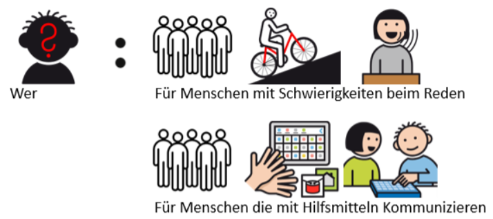 schwer verständlich sprechen können und andere Kommunikationsmittel benutzen.